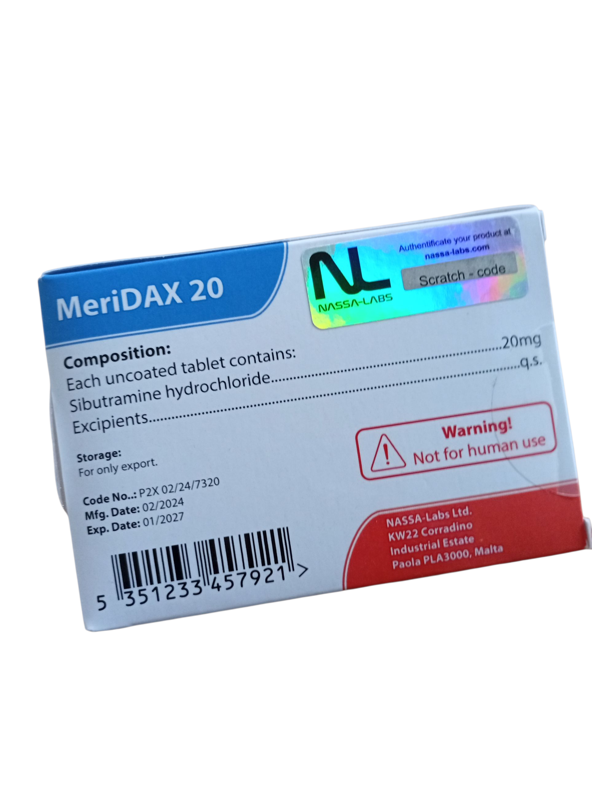 Meridax 20 mg Tabletten – Originalverpackung mit Blister und Schachtel